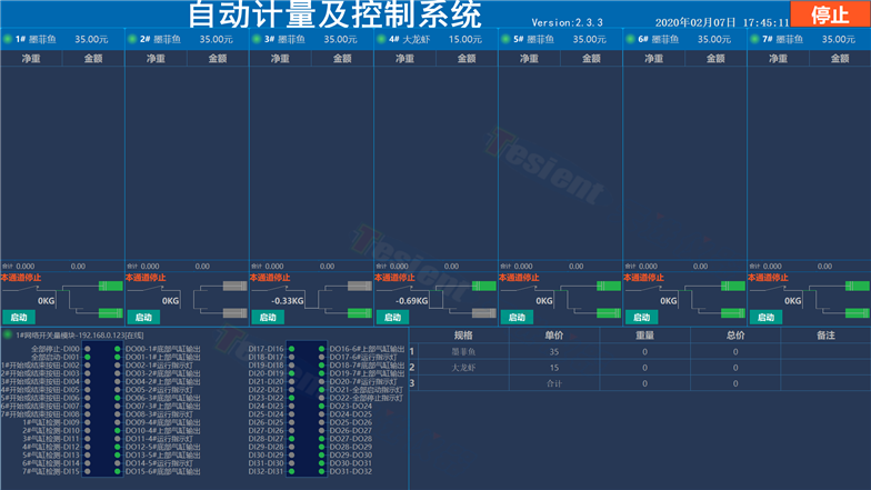 項(xiàng)目描述:根據(jù)每路稱重傳感器數(shù)據(jù)通過開關(guān)量IO模塊,控制整個流程,并上送公網(wǎng)SQL數(shù)據(jù)庫。